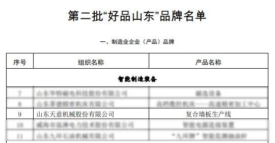 喜報(bào)!天意機(jī)械入選好品山東